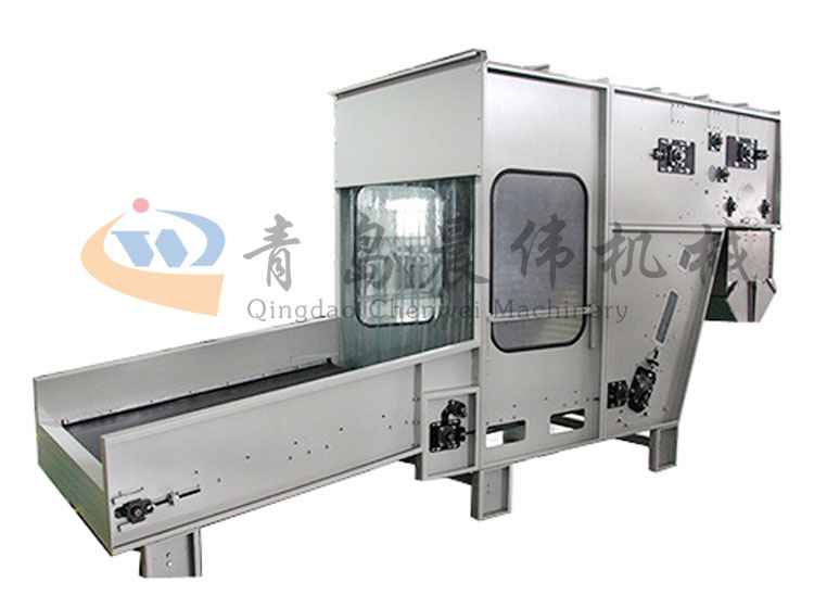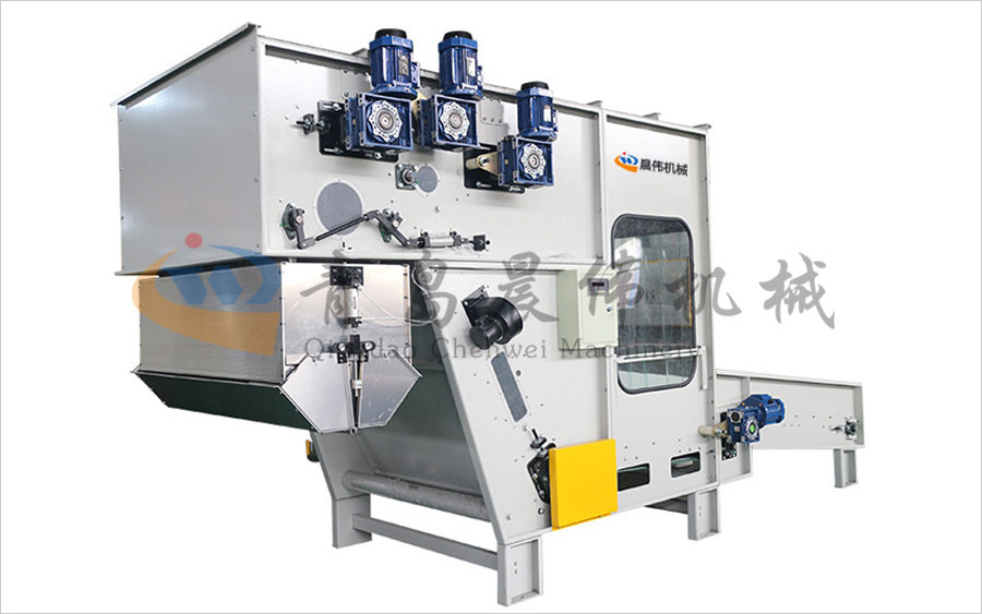 將各種等級整包或半包料進行初步打開,無需人工抖棉,降低勞動強度,通過稱重系統(tǒng)PLC計算進行準確配比,均勻平鋪到長簾上。