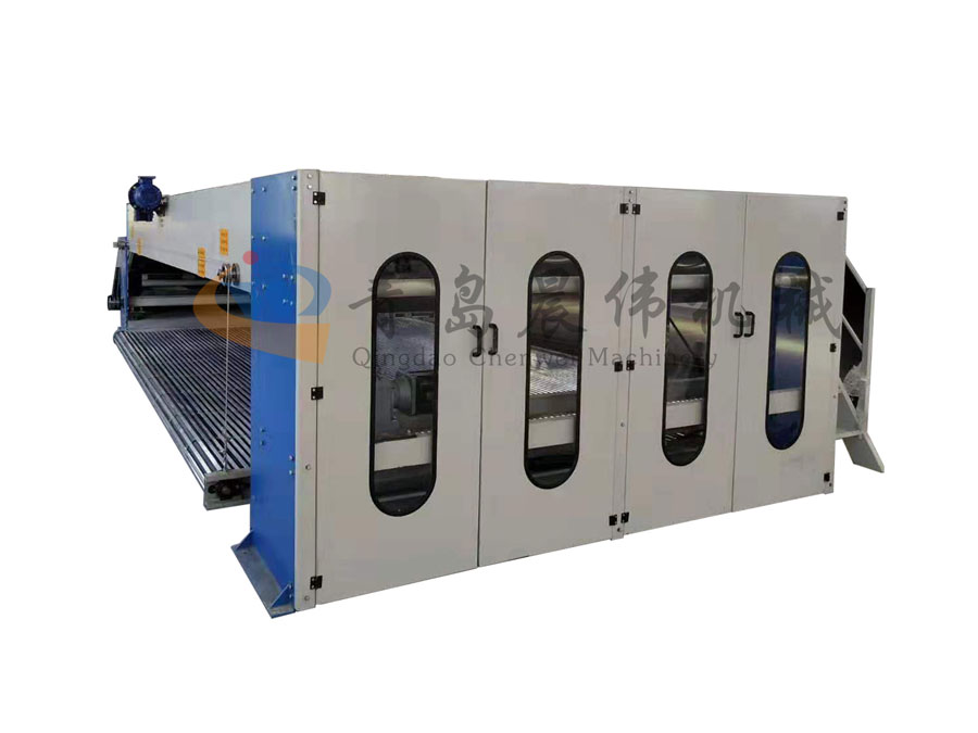 4.夾持式防靜電喂入簾,往復換向運轉平穩(wěn),纖網厚薄均勻,輸出簾升降調節(jié)方便。